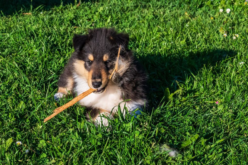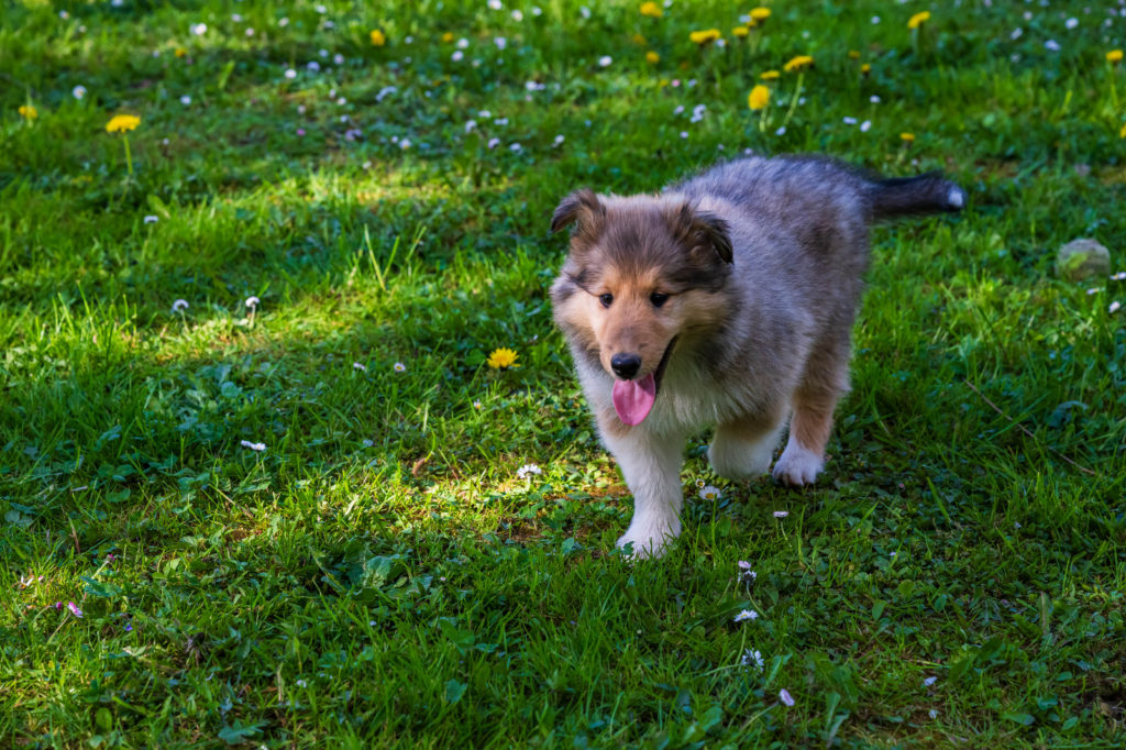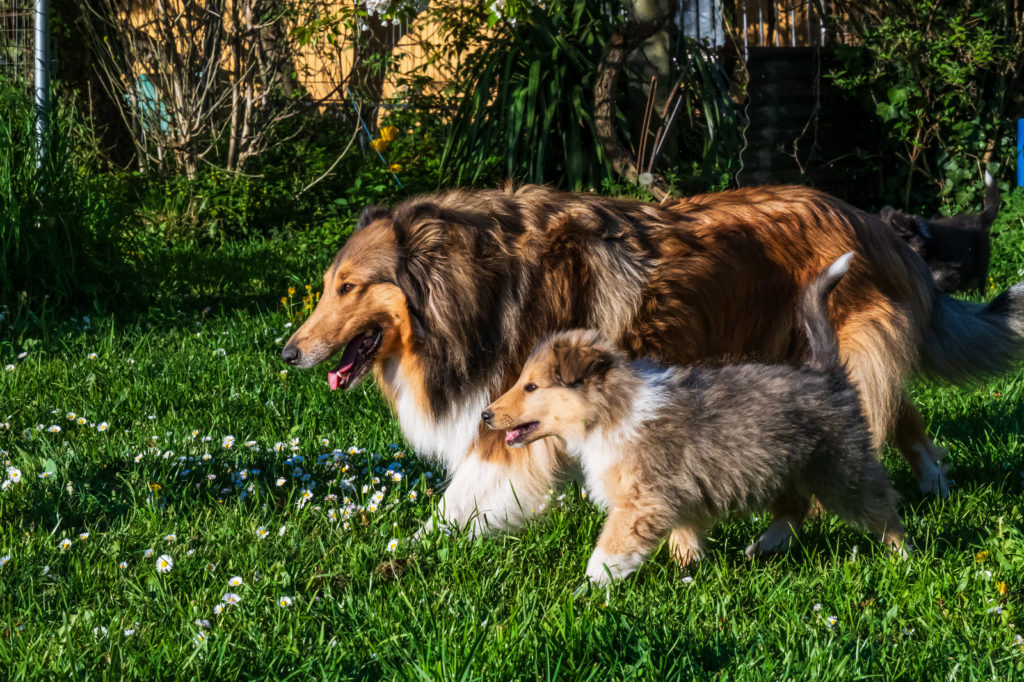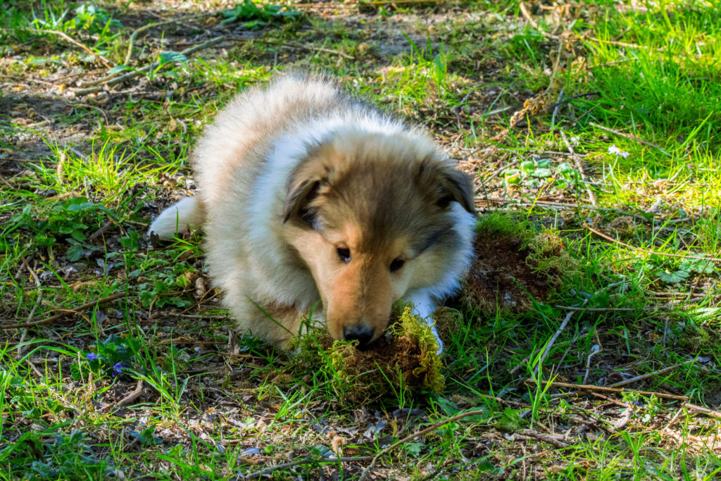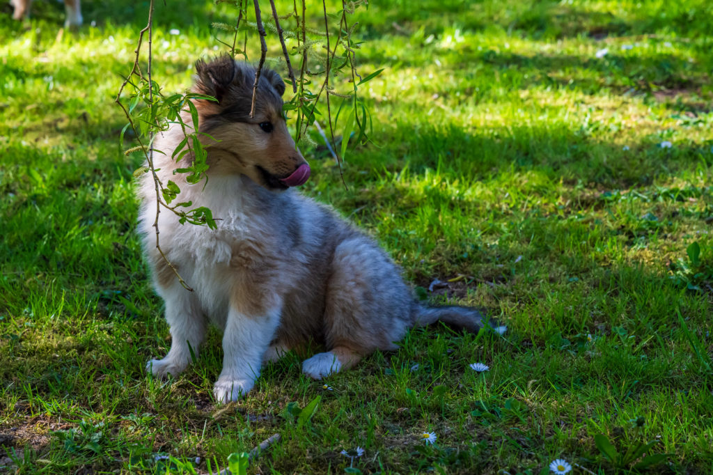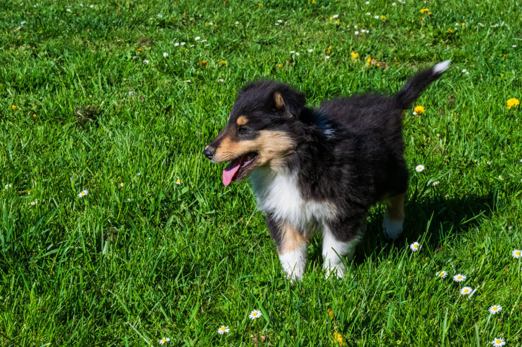 4 semaines et nous passons de plus en plus de temps dehors. Plusieurs chiots cherchent encore leur famille...